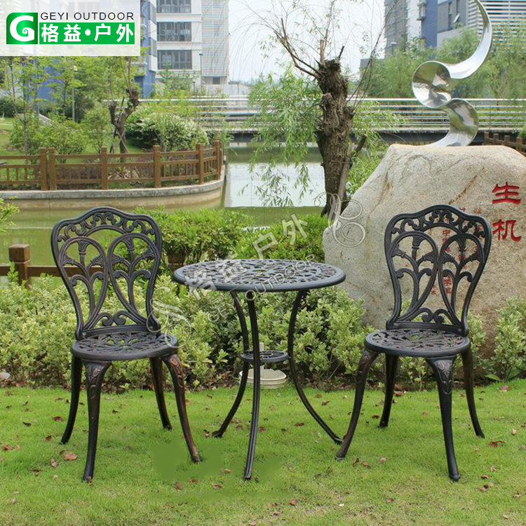 格益户外家具铸铝桌椅 欧式别墅咖啡阳台三件套餐桌椅
