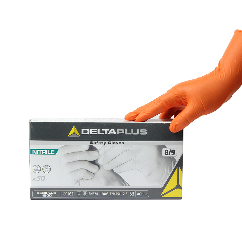 产品名称:代尔塔 201375 防过敏 抗真菌细菌 天然乳胶 橙色 一次性无粉丁腈手套