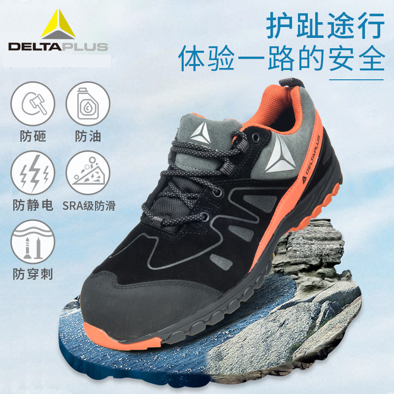 代尔塔301338防砸防刺穿防静电安全鞋是带尼龙网眼的低帮安全鞋;安全鞋非金属合成材料保护包头和防刺穿中底,橡胶与TPU复合大底,防滑耐磨;
