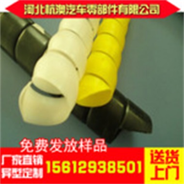 螺旋保护套现已广泛应用于挖掘机、装载机、压路机、摊铺机、叉车、吊车、自卸车等工程机械和注塑机设备。主要安装于液压胶管、电线、电缆等产品的外部。其功能是增强液压胶管、电线、电缆等内部产品的耐磨、抗静电和抗紫外线性能,在各种恶劣环境下对液压胶管等内部产品起到安全保护作用。液压胶管、电线、电缆等产品安装螺旋保护套不但可以提高美观度,而且可以使内部产品的寿命延长3年以上。与传统的金属护簧产品相比,胶管保护套安装简便,耐磨性更好;抗老化、抗腐蚀性能强;更能有力的对液压胶管、电线、电缆等产品外表面进行防老化和抗磨擦保护;具有更优异、更便捷、更环保节能的效果。