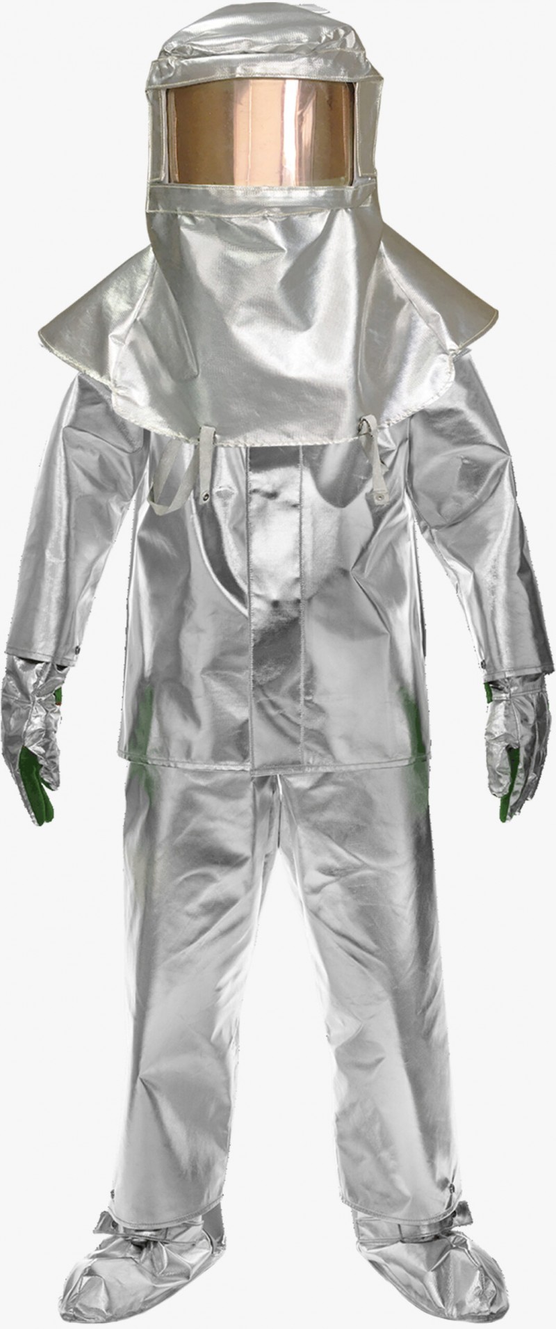 雷克兰AHR1000系列隔热防护服,AHR1000由采用305g/m2芳纶和预氧丝混纺纤维镀铝面料,辐射热反射率超过85%。灵活的镀铝外层具有更好的抗裂性能和耐高温性能,基于复合技术,铝层在反复摩擦后也不会脱落。符合EN11612:2005标准,测试达到B1 C3 D1 E3 F2等级。里层阻燃棉面料,具有良好的吸湿排汗性能,手感柔软。增加了穿着的舒适性。套装由隔热头罩、隔热服、隔热手套、隔热靴套、产品包组成;