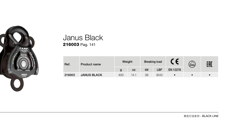 产品名称:CAMP/坎普 216003 JANUS 超大承重连接孔 高强度可移动侧板 双滑轮