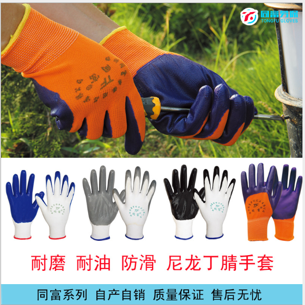 同富尼龙丁腈手套耐磨耐油防滑防水浸胶透气丁晴手套