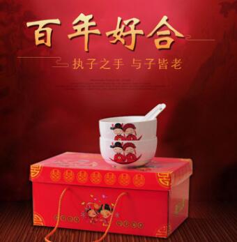 喜庆餐具厂家直销婚庆礼品 陶瓷婚礼用品赠品 喜结良缘碗