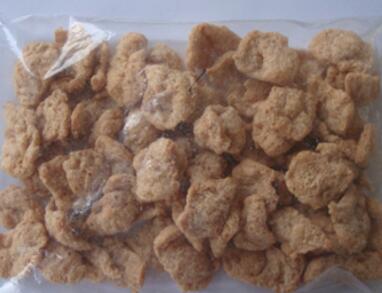 本公司组织蛋白分为颗粒、块状、片状、布丁状等。其中,颗粒状的应用于细碎肉产品;片状、块状的可用于素肉产品中。建议用量为:细碎肉产品中可加入3%-8%的组织蛋白。素肉产品可适量。