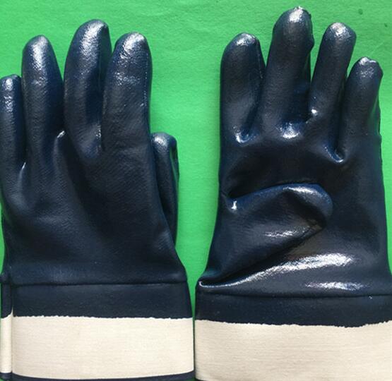 蓝色大口丁腈耐油手套棉毛丁晴安全袖口机械耐磨耐酸碱批发
