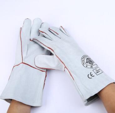 【产品名称】14寸 白色挂里电焊手套 红色 36厘米手部防护手套