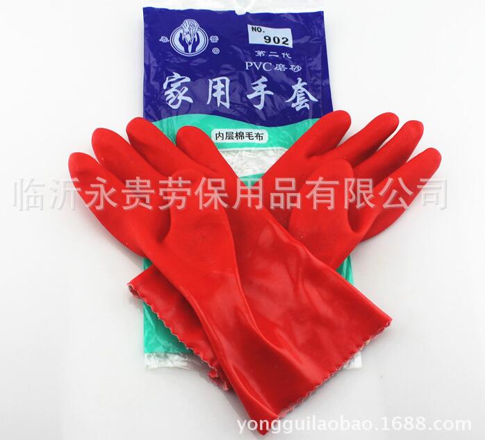 名称:春蕾902第二代PVC磨砂家用手套(内层棉毛布)