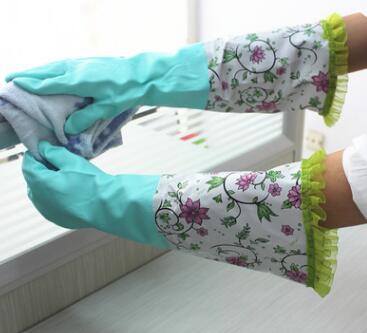 冬季新款加绒乳胶花边保暖家用清洁手套