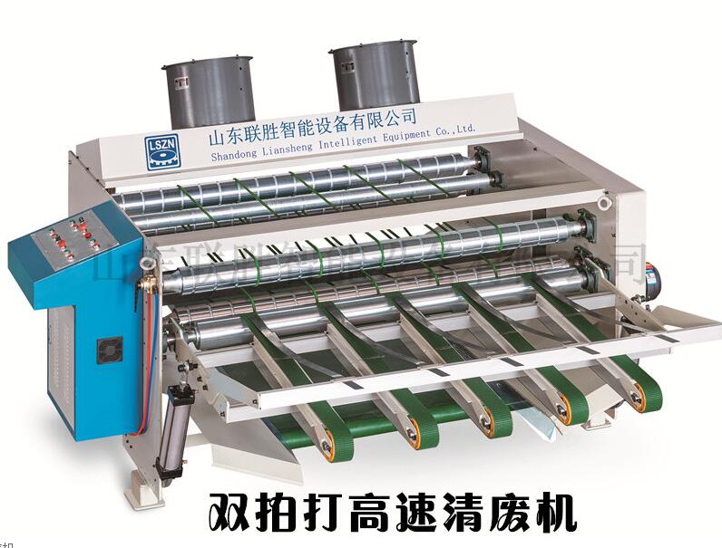| 双拍打高速清废机分为接纸区和震动除废区两部分,震动区由两组震动机构组成,通过两次清废可完全清除纸板废屑,整机配有风机除废和双毛刷除废机构,整机在结构上安全稳定效率更高。 | Contains Cardboard receiving and vibrate stripping two parts. Two vibrating units in the stripping part, working with high speed blowers and brushes, perfectly removes all the waste, safe and effective. | ||||