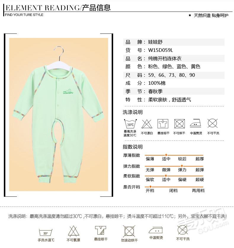 娃娃舒0-2岁婴儿纯棉连体衣宝宝长袖爬服开档全棉哈衣无骨缝制