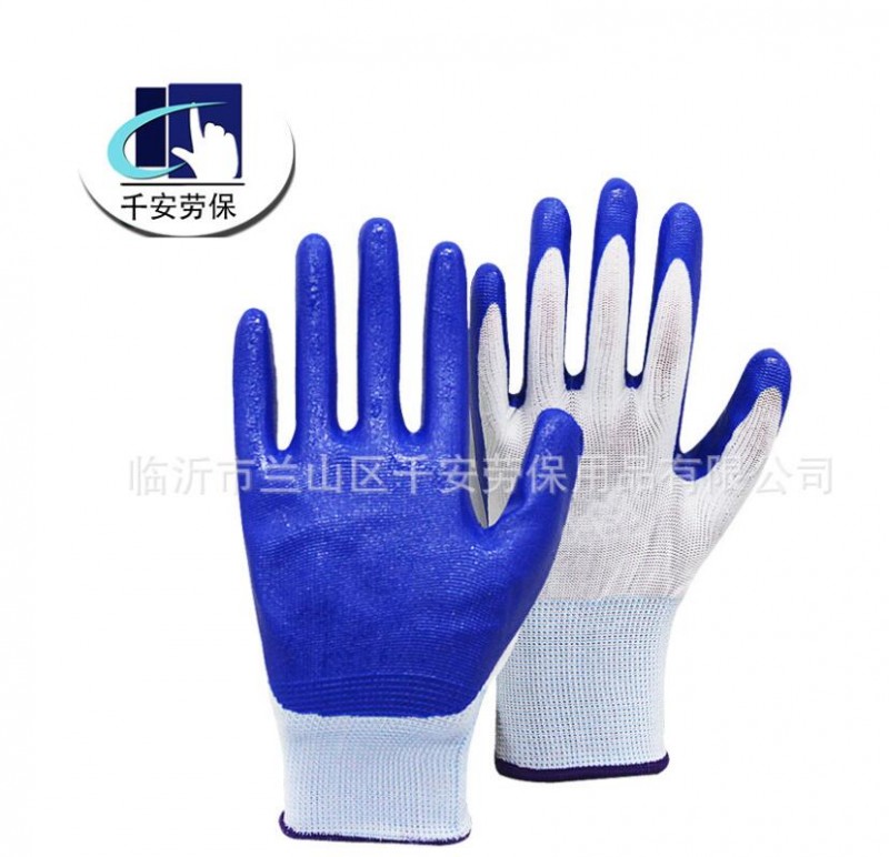 13针尼龙手套批发百盛耐磨防滑劳保防护涂胶浸胶丁睛手套