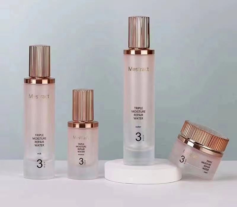 爽肤水系列:玻璃瓶身+塑料内塞+外盖(100ml以上,也可以配有泵头的那种)