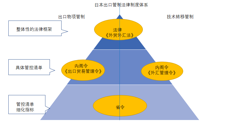 日本关于安全贸易管控的法律制度由法律、内阁令和省令等多个层级的法律法规构成。
