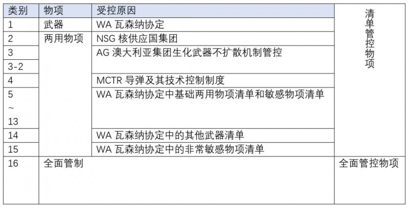 管制分类和清单