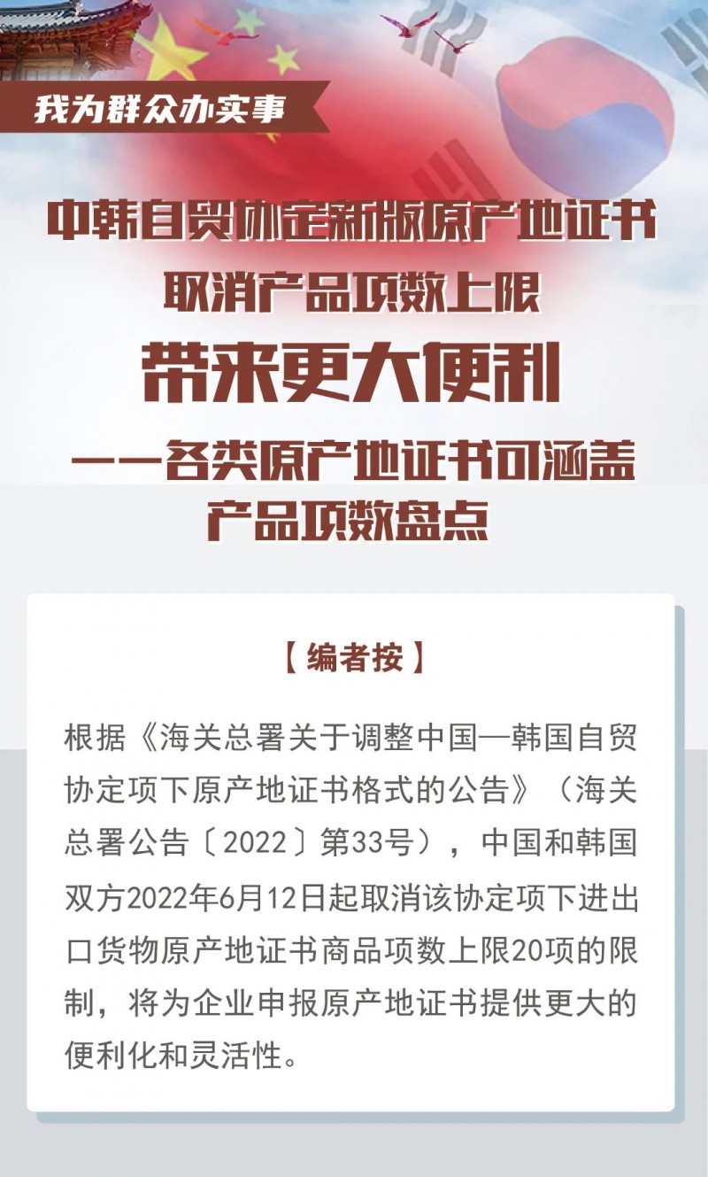 我为群众办实事——中韩自贸协定新版原产地证书取消产品项数上限带来更大便利——各类原产地证书可涵盖产品项数盘点
