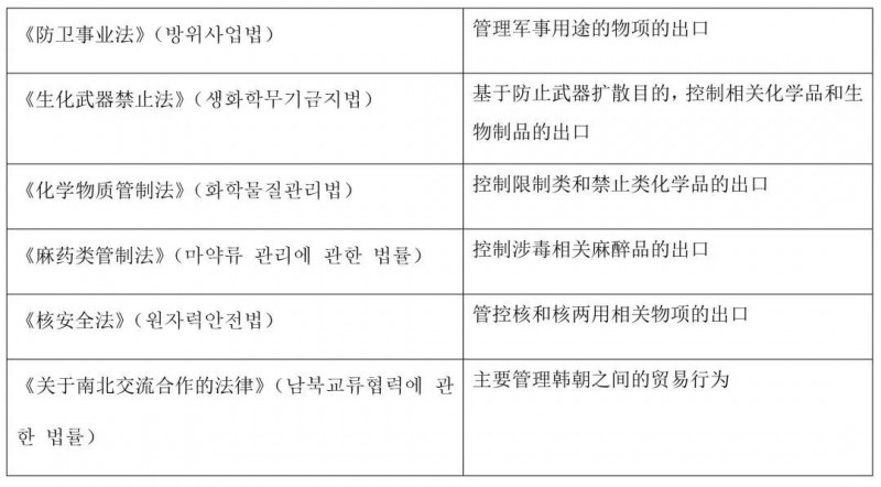 韩国出口管制法律不仅规制物项出口行为,还规定了对运输、转口贸易和贸易居间中介行为的管理措施。