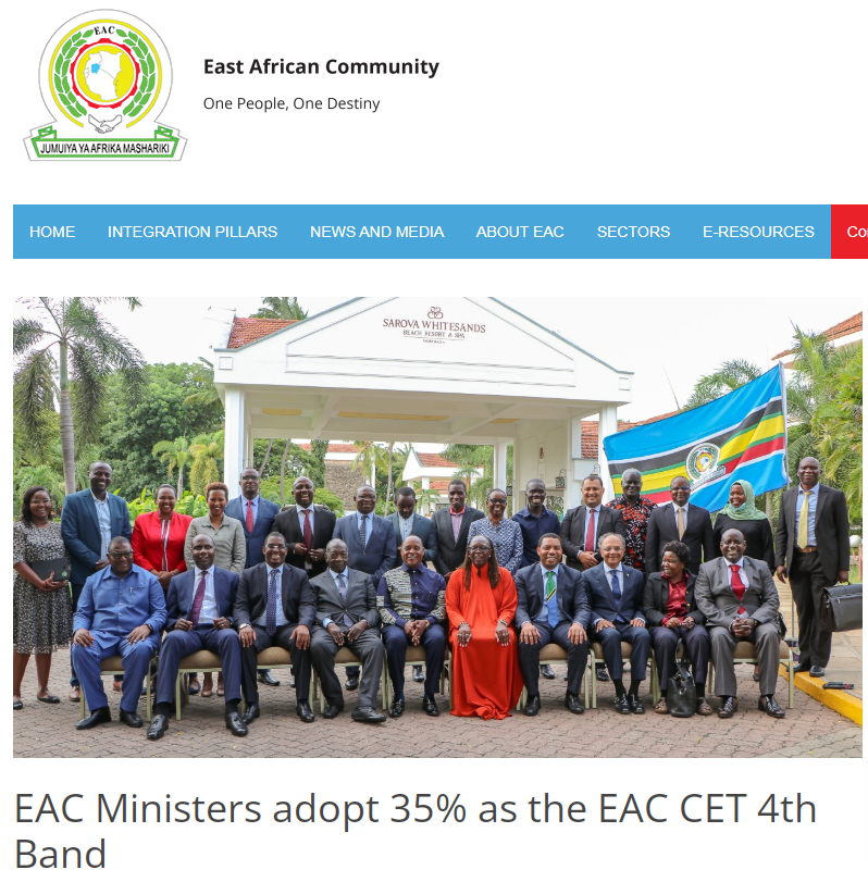 今年7月1日起,东非共同体正式实行第四档35%的共同对外关税(Common External Tariff,CET)的决定,计划纳入的商品包括: