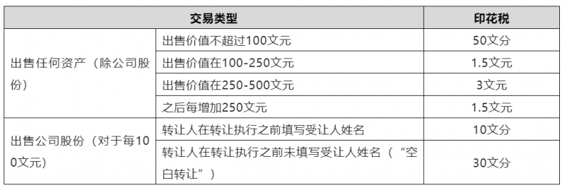 表2 收购公司股权及资产适用的印花税