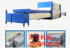 全自动真空覆膜机 针对高光、亚光PVC推出此设备,所以在加热和气压方便做的尤为突出,加热我们采用散热板加热,可避免橱柜门板表面起橘皮纹,真空泵采用XD100德国先进技术真空泵,压力大,并且不易损坏。作于橱柜门的厚度为18毫米的密度板正面及四边吸塑PVC。