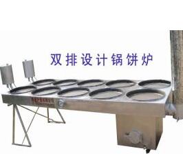 胜泉牌锅饼炉是一种新型燃煤导热油锅饼烤炉,主要烤制山东大锅饼、烧饼、锅盔饼、发面火烧、油饼、水煎包等食品。制造原理是利用煤炭加热节能锅炉内的导热油,导热油循环至烤锅释放热量烙制食品,然后再循环回锅炉内加热。烤锅放置在节能锅炉的一端或两端。这种炉具的优势有:一炉加热同时带动4-30个烤锅烙制食品,可以提高工作效率;锅炉一端与膨胀箱一端烤锅温度一致,烤饼均匀;烤锅由公司专业模具一次冲压成型,锅底平整,与传统铸造铁锅外观一致,方便放饼、转饼、翻饼;烤炉出厂前全部点火试验,客户在接到货后无需安装,可直接使用;不用安装鼓风机,45-50分钟达到200度,升温迅速,省时省力省钱。
