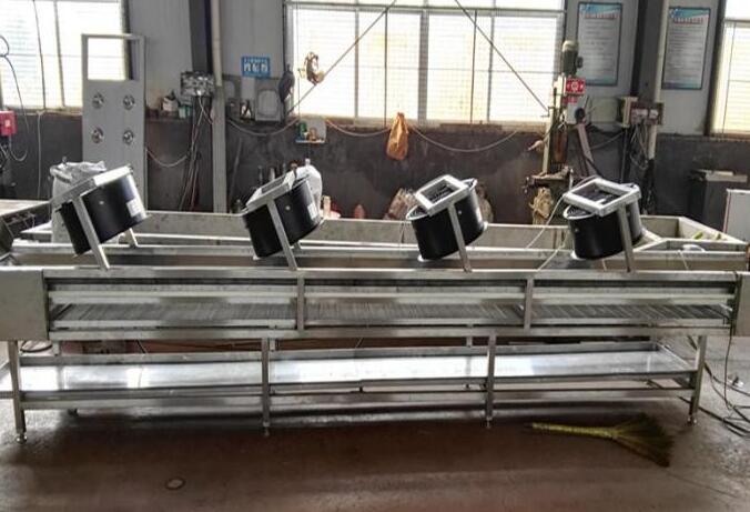 3. 风干机除水后可直接装箱,风干机实现连续作业(与连续工作杀菌机配套使用),只需将杀菌后的产品放入输送网带,经风干机产生的气流经喷嘴喷射而出,吹干风温为常温,风干机有效保护物料本身的色泽和品质。从而达到包装除水、除油渍、水垢等效果,即可装箱入库。