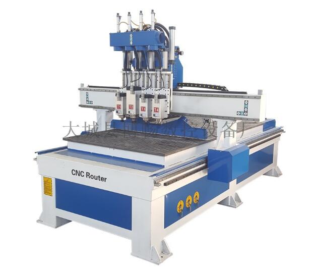 四工序数控开料机是一款经济型的板式家具开料机设备,机器结构由四个主轴组成,气动切换。可以安装四个不同的刀具,从而实现板式家具开料打孔、开槽,橱柜门板铣型等工艺。四工序数控开料机在打孔方面无需铣孔,多大的孔位安装多大钻头即可。四工序开料机根据板式家具三合一链接件及木屑所需孔位大小定制生产的数控开料机,机头部位搭载四个主轴,在加工橱柜时主轴上装载的刀具分别为6mm,8mm,10mm,15mm。在打孔时四个主轴气动切换来解决所需孔位,在开槽和开料时两个装载6mm刀和8mm刀的主轴进行加工,同时四工序开料机也可以实现吸塑门板造型的加工。