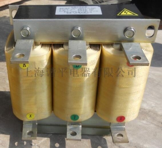 ◆产品介绍 该系列干式铁芯进、出线电抗器用于与变频器的进、出端相串联,作为变频器的进线电抗器和出线电抗器。变频器在工作时将产生较大的谐波,以5、7、11、13次为主,谐波含量很高,如果不加装进线电抗器,将大大缩短变频器及其它设备的使用寿命,谐波干扰严重时,会导致有些设备不能正常运行,加装进线电抗器后将大大降低各谐波的含量,提高电网的功率因数,保证变频器及其它负载的安全运行,确保其它设备不受谐波干扰影响;加装出线电抗器可以钝化变频器输出电压(开关频率)的陡度,减少逆变器中的功率元件的扰动和冲击,而且该电抗器在负载合闸瞬间能够有效地抑制回路涌流,保护回路中的变频器装置及其它元器件免受过电流冲击。其结构特点如下: 1.该电抗器为三相,均为铁芯干式。 2.铁芯采用**低损耗冷轧硅钢片,芯柱由多个气隙分成均匀小段,气隙采用环氧层压玻璃布板作间隔,以保证电抗器气隙在运行过程中不发生变化。 3.线圈采用F级或H级扁铜线绕制,排列紧密且均匀。 4.电抗器的线圈和铁芯组装成一体后经过预烘→真空浸漆→热烘固化这一工艺流程,采用H级浸渍漆,使电抗器的线圈和铁芯牢固地结合在一起,不但大大减小了运行时的噪音,而且具有极高的耐热等级,可确保电抗器在高温下亦能安全地无噪音地运行。 5.电抗器芯柱部分紧固件采用无磁性材料,减少运行时的涡流发热现象。 6.外露部件均采取了防腐蚀处理。