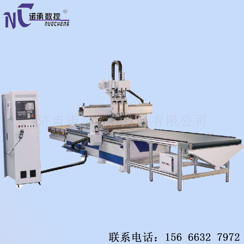 板式家具下料机高端数控开料机多头橱柜门雕刻机板式家具因其表面材料和表面装饰效果的不同有不尽相同的工艺流程,所以不同的客户用到的设备都是不一样的。加上市场上软件品牌泛滥,好的设备搭配合适的软件才真正能发挥数控设备的作用。所以广大客户一定要在亲自了解设备厂家设备功能、实用性以及厂家实力各方面进行综合考察后再做决定,以便给后期带来不必要的麻烦。