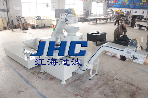 烟台江海过滤(格润环保)设备有限公司生产的金属甩干机,利用高速离心甩干原理,对粉碎机粉碎后的切屑进行甩干处理。一是可以回收切屑液,节约加工成本;二是保障在直接投炉前不影响回炉的化学成分。