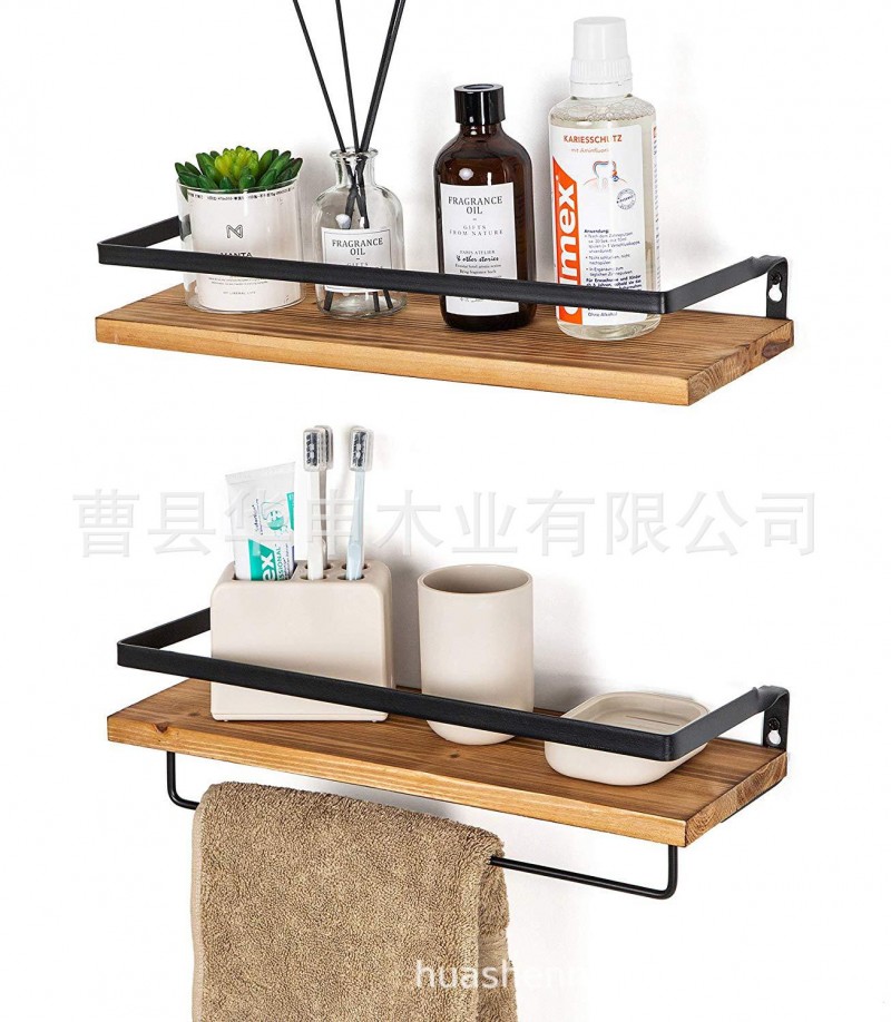 | 品名 | 浮动搁架壁挂式搁架浴室浮动搁架乡村风格木制墙壁搁架带毛巾条 |