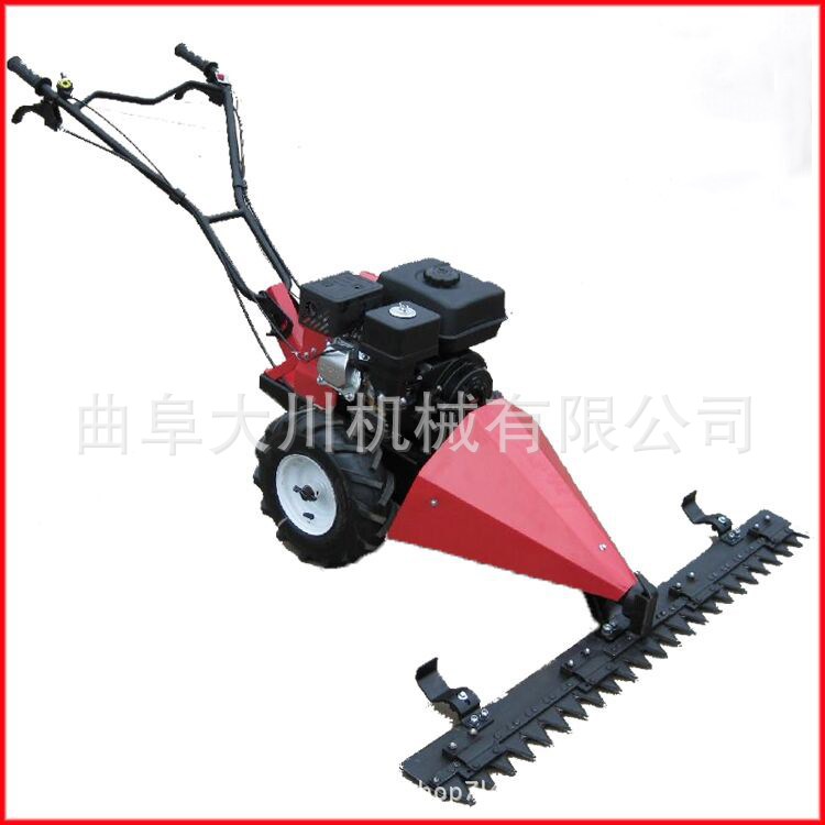 割草机又称除草机、剪草机、草坪修剪机等。割草机是一种用于修剪草坪、植被等的机械工具,它是由刀盘、发动机、行走轮、行走机构、刀片、扶手、控制部分组成。刀盘装在行走轮上,刀盘上装有发动机,发动机的输出轴上装有刀片,刀片利用发动机的高速旋转在速度方面提高很多,节省了除草工人的作业时间,减少了大量的人力资源。