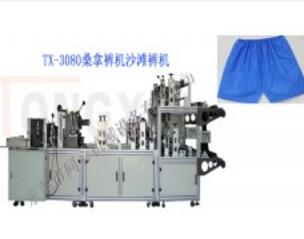 沙滩裤机,桑拿裤机,平脚裤机,采用超音波熔合技术,从原材料送入到成形切断至成品输出,全制程自动化且产量极高。自动张力控制系统!