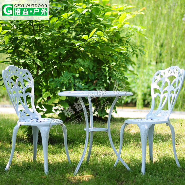 格益户外家具铸铝桌椅 欧式别墅咖啡阳台三件套餐桌椅