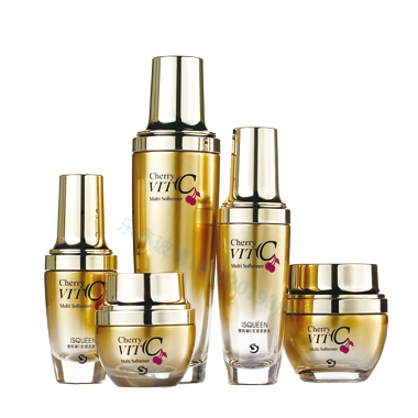 化妆品玻璃瓶生产加工产品,客户会对产品上商标或logo标志进行烫金加工。主要以金、银两色为主,也可进行其他颜色的烫金产品生产,但受原材料限制,无法进行调色工作。字体图案存在不完整,有缺口,断裂现象。