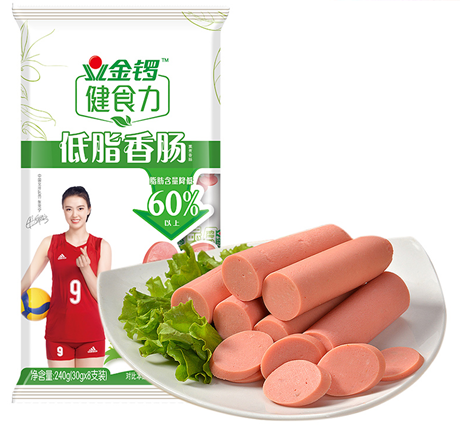 3.同类产品差异化:低脂高蛋白,健康实力派,对比本品牌普通香肠,脂肪含量降低60%以上,营养饱腹低脂肪。