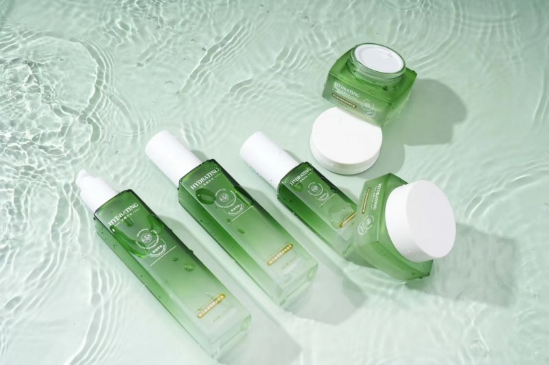 化妆品套装瓶印刷工艺是将墨水或油墨通过在网孔上刮刀的方式,印刷到化妆品玻璃瓶上,从而实现印花图案的呈现。这种工艺可以印刷出细腻、清晰的图案,颜色鲜艳明亮,适合于各种颜色和形状的化妆品瓶。水转印是将喷涂在水表面上的图案印制到香水瓶上,通过水的冲击和压力,将图案转移到化妆品分装瓶上,从而实现印花效果。