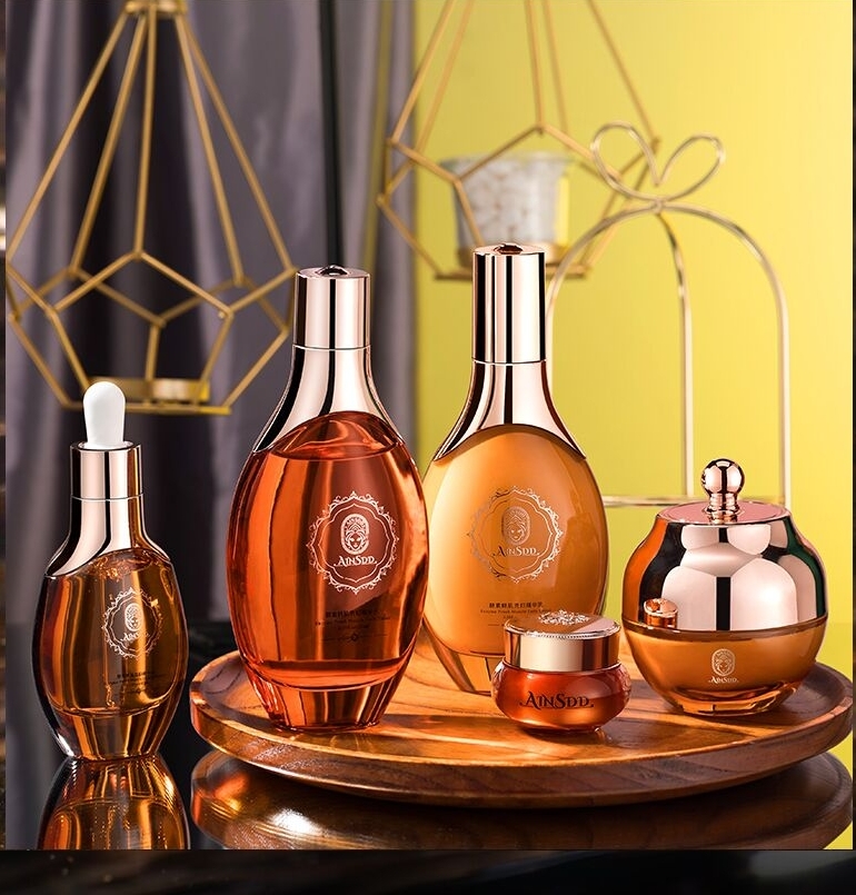 玻璃瓶内喷色主要用于需要内部着色的产品,如香水瓶、香薰蜡烛杯、药瓶等。这些产品的内部颜色可以增强视觉效果,提升产品的档次感。化妆品玻璃瓶烫金(银)工艺是一种利用热压转移原理,将电化铝中的铝层(金色或银色)转印到承印物表面以形成特殊金属效果的工艺。