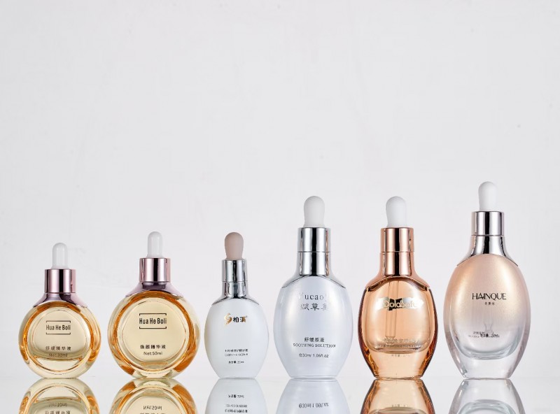 化妆品玻璃瓶瓶内外喷加烫金加烫银工艺组合应用时,需要注意材料兼容性、工艺顺序、温度控制、压力调整、操作环境以及质量检测等问题。只有充分考虑并处理好这些问题,才能确保产品达到预期的装饰效果和质量要求。尽管烫金印刷具有诸多优点,但其物料成本相对较高,且制作周期较长。因此,在选择是否使用烫金印刷时,需要综合考虑产品的定位、市场需求以及成本效益等因素。
