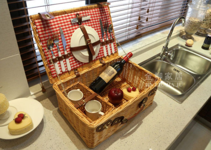 户外野餐收纳篮草编藤编野餐篮水果篮收纳筐带盖餐篮带餐具