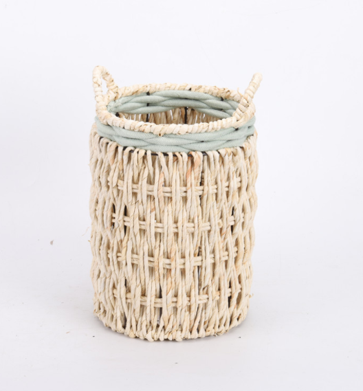 两耳直筒筐,锈色铁丝架,绿色棉绳和自然色玉米绳编织