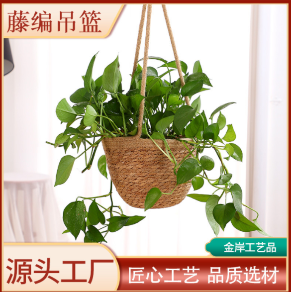 厂家批发编织吊篮 草编藤编麻绳绿植盆栽 植物花筐竹篮鲜花蓝子