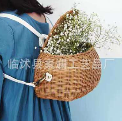 ins款小背篓 儿童自行车车筐 手工藤编玩具篓