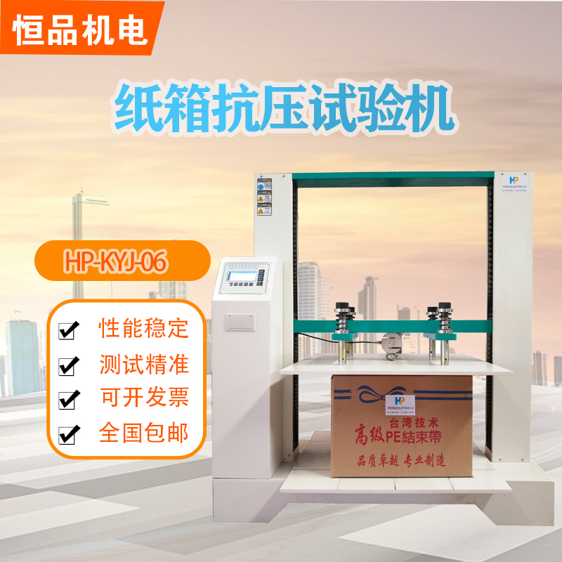 纸箱抗压试验机是济南恒品开发的一款专业用于测试纸箱抗压性能的试验机,纸箱抗压试验机 (又称纸箱抗压测试仪、纸箱压缩试验机、纸箱耐压试验机、纸箱抗压机) 是瓦楞纸箱抗压强度性能检测的基本仪器,适用于各类瓦楞纸箱的抗压强度试验和堆码强度试验。