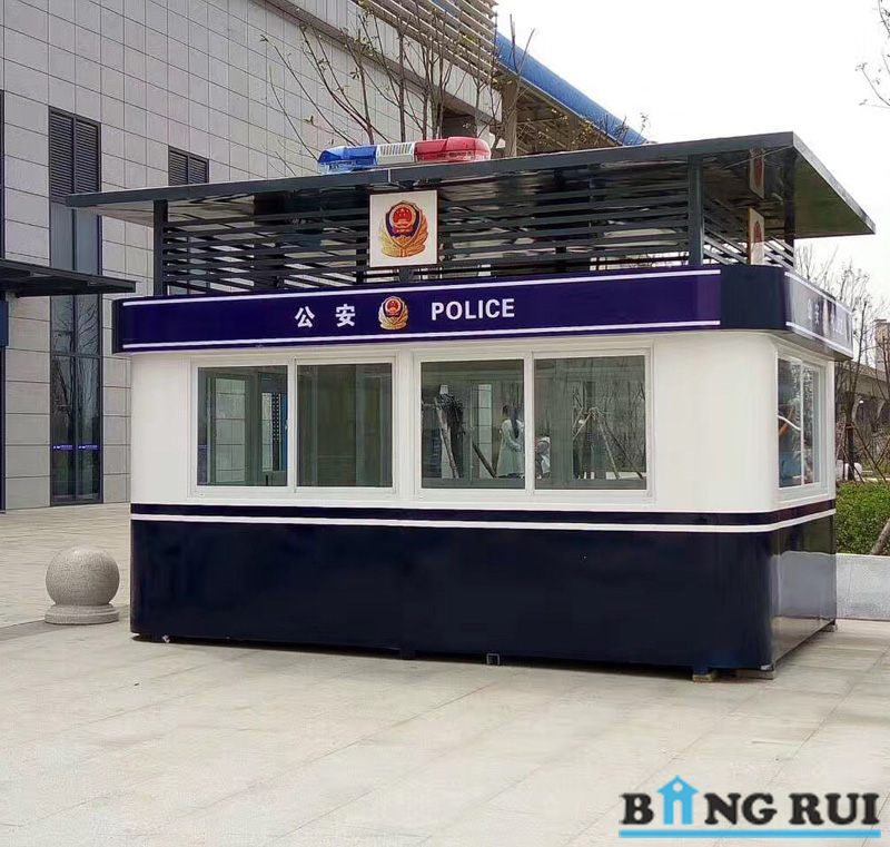 配置:支撑柱、框架、圆弧群边、外面板、内面板、岗亭内壁、底座、内吊顶、外顶、活动门、活动窗。