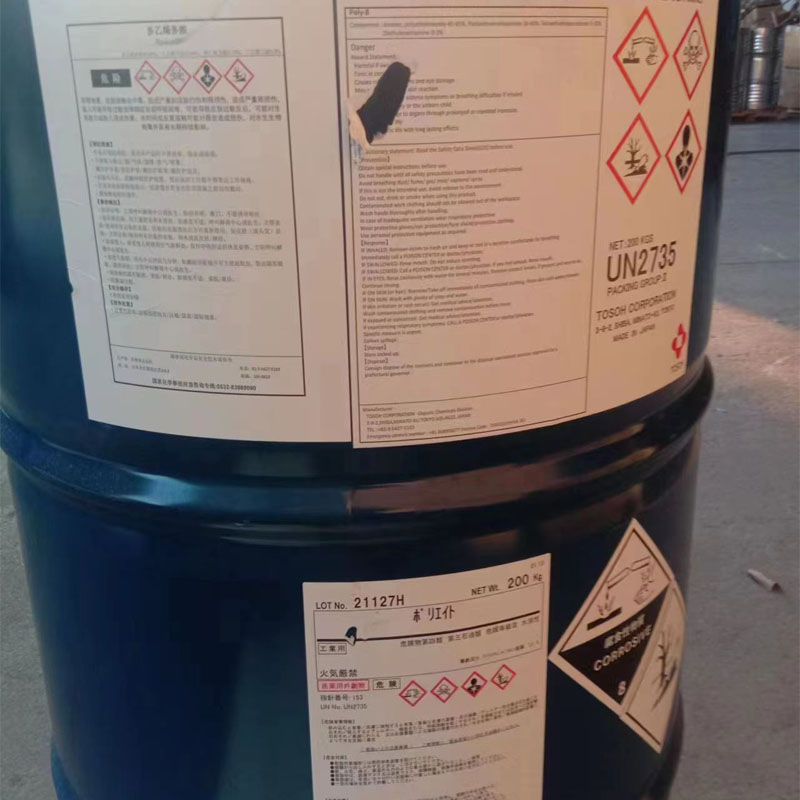 黄色或橙红色透明粘稠液体。是乙二胺、二乙烯三胺、三乙烯四胺和四乙烯五胺的联产物。呈强碱性。能与水、醇及醚混和。性质 黄色或橙红色透明粘稠液体。是乙二胺、二乙烯三胺、三乙烯四胺和四乙烯五胺的联产物。有氨气味。极易吸收空气中的水分与二氧化碳。与酸生成相应的盐,低温时会凝固。呈强碱性。能与水、醇和醚混溶。有腐蚀性。
