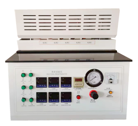 HP-RF300B五点热封试验仪采用热压封口法测定塑料薄膜基材、软包装复合膜、涂布纸及其它热封复合膜的热封温度、热封时间、热封压力等参数。熔点、热稳定性、流动性及厚度不同的热封材料,会表现出不同的热封性能,其封口工艺参数可能差别很大。热封试验仪,通过其标准化的设计、规范化的操作,可获得精确的热封试验指标。