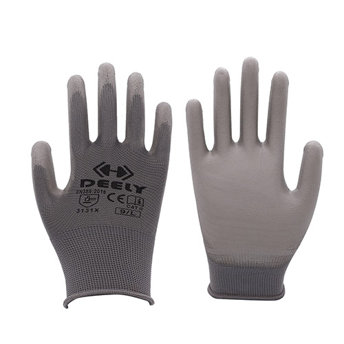 1,手套芯精细涤纶织成,质量高,不脱线,手掌和手指表面涂PU树脂。