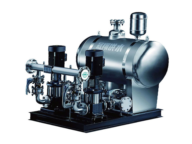 无负压供水设备的工作原理是:通过微机控制变频调速来实现恒压供水。首先根据实际情况设定用水点工作压力,并时刻监测市政管网压力,当压力低于用户所需压力时,微机自动控制变频器启动,调节水泵转速提高,直到管网压力上升到用户所需压力,并控制水泵转速进行恒压供水。当用水量增加时转速提高,当用水量减少时转速降低,时刻保证用户的用水压力恒定。自来水的压力越低,水泵的转速越高;自来水的压力越高,水泵的转速越低。当自来水的压力不小于用户所需的压力时,水泵停止运转。无负压供水设备在运行过程中充分利用自来水的原有压力,又保证了用户供水压力恒定。设备在运行过程中微机时刻监测市政管网和系统压力,自动控制真空抑制器及稳流补偿器来抑制负压的产生,既充分利用了市政管网的压力,又不产生负压,不对市政管网产生任何不良影响,保证了用水的安全性。