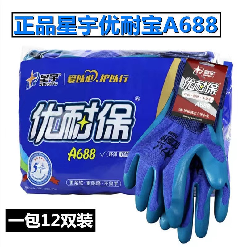 采用乳胶二次压纹制作,纯胶无异味,不臭手,超耐磨,一副顶三幅,辉宏劳保公司自推出压纹688产品以来,广受新老顾客好评。